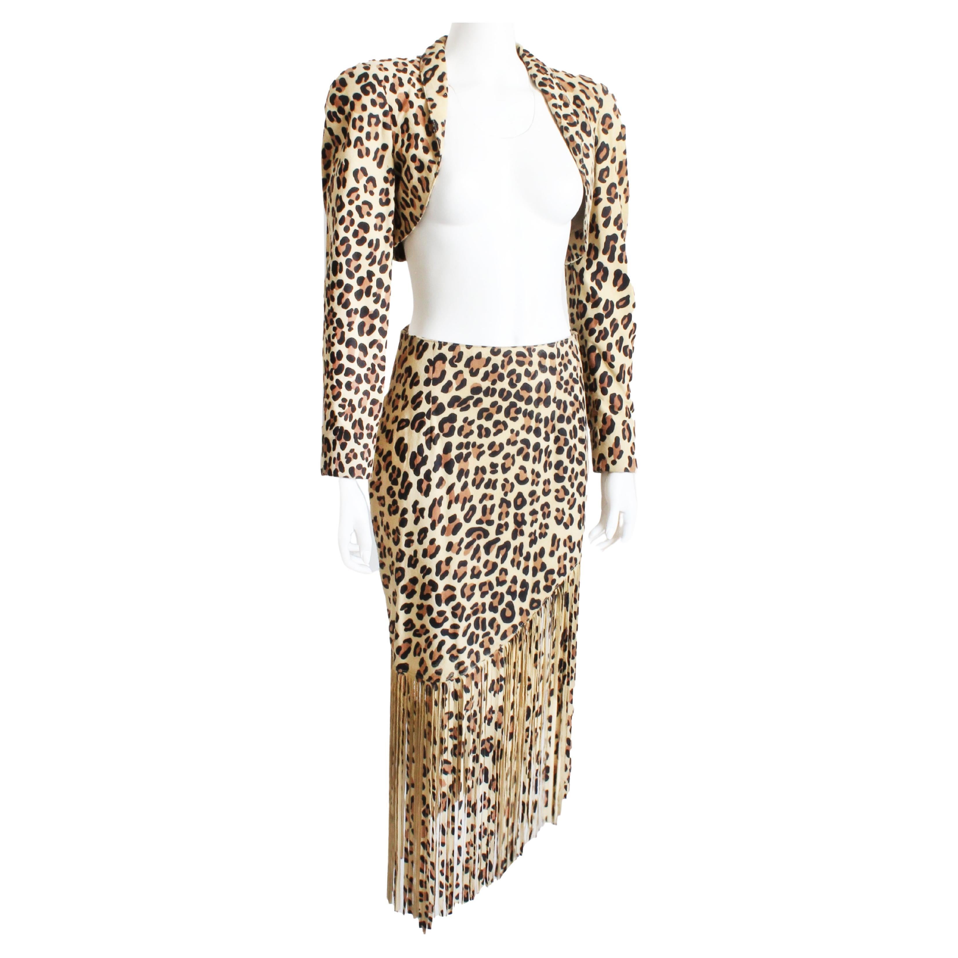 Vari Zioni Leopard Print Bolero Jacket And Fringe Skirt Set 2pc Leather Size M 8 For Sale At 1stdibs